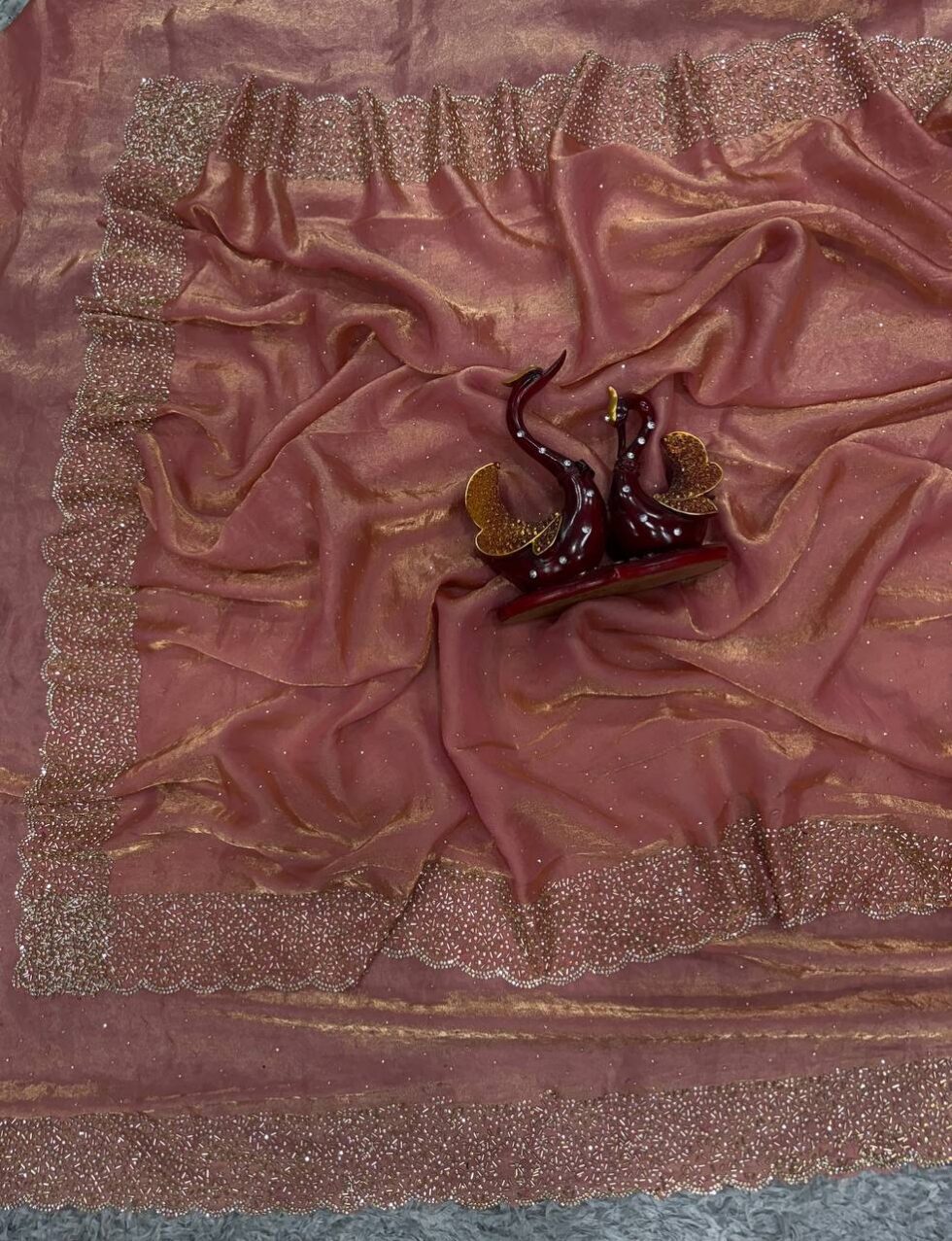 Space Silk Saree with Jarkhan Diamond Work